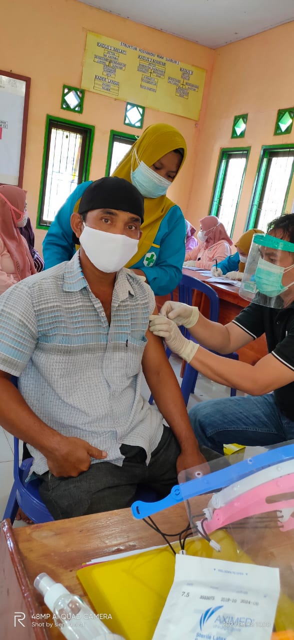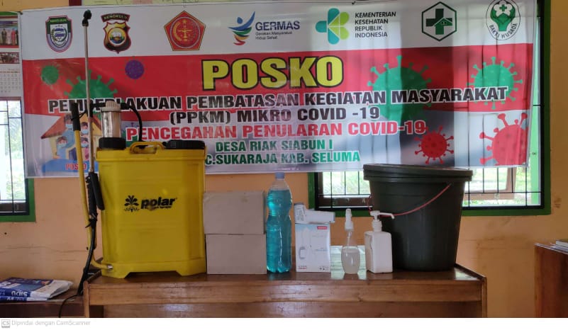 Sukaraja, dalam rangka mendukung program pemerintah pusat dalam penanggulangan bencana covid 19 dan pencegahannya maka pemerintahan desa Riak Siabun 1 dan warga melakukan vaksinasi. vaksinasi ini dilaksanakan di balai desa riak siabun 1 pada hari jumat 18 Mei 2021 dan di dukung oleh dinas kesehatan kabupaten seluma di bantu puskesmas Riak Siabun. selain vaksinasi juga dilakukan pencegahan penyebaran virus covid 19 dengan cara pembagian alat protokol kesehatan berupa ember cuci tangan, sabun cair, handsanitizer,masker kepada warga desa. program ini telah di laksanakan pada tahun 2020 yang lalu sedangkan tahun 2021 ini pun tetap dilanjutkan program tersebut berupa penyediaan alat cuci tangan, sabun cair, handsanitizer di tempat fasilitas-fasilitas umum, adapun kewarga desa dilakukan pembagian kembali berupa masker,sabun cair dan handsanitizer. selain alat prokes juga dilakukan penyemprotan di tempat-tempat umum yang dilakukan oleh pemerintah desa,BPD bersama babinsa,babinkamtibnas dan warga desa.